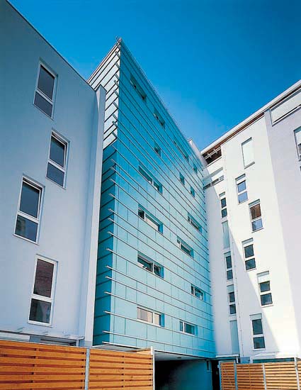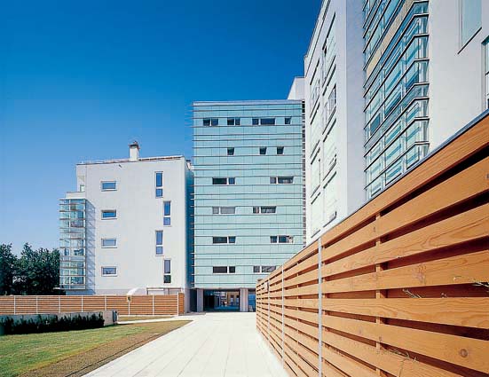Skladnost svetlih barv bele in svetlo sive, ter pastelno zelene, povdarja svežino, ki naj bi jo objekt izžareval in podarjal svojim stanovalcem. Ta ideja se nadaljuje tudi v notranjosti objekta, kjer ima vsak od štirih vhodov svojo barvno kombinacijo tlaka in oblogo sten iz umetnega kamna. Mnogoterost različnih svetlih in temnih barv, naj bi prispevala k igrivemu vzdušju vseh bodočih stanujočih , starejših in mlajših, posebej pa mladih družin z otroci.